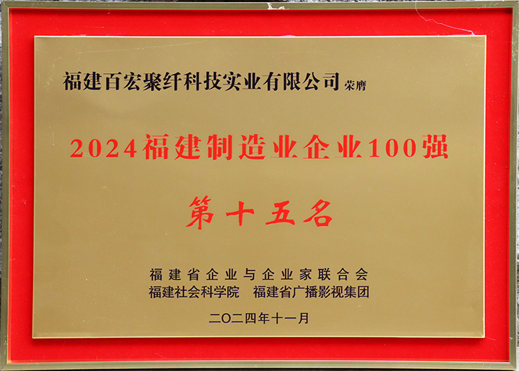 百宏聚纖公司榮登 “福建首屆品牌價值百強”榜單